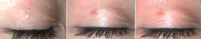埋没法に使う糸の劣化変性も問題になります。宣伝では、糸は医療用で溶けることのない永久糸であるから安全性に問題はないとされます。しかし、埋没法の糸として用いられることの多いナイロン糸は経年変化で劣化変性し、10年も経過するとボロボロになってしまうのです。埋没糸が劣化断裂すると全部が抜糸できず、一部の糸が残存することにもなります。また埋没糸の周囲にシコリや瘻管(ろうかん)が認められることもあります。抜糸の方法には皮膚側アプローチと結膜側アプローチとがあります。皮膚側アプローチには皮膚を切る長さにより穿刺(せんし)切開法、小切開法、全切開法があります。ほとんどの埋没法では、皮膚側に埋没糸の結び目があるので、基本的な抜糸方法としては皮膚側アプローチでしかも傷跡の短い穿刺(せんし)切開法を行っています。穿刺(せんし)切開法では、埋没糸の存在が予測される皮膚に1~2mmの刺し傷(穿刺切開)を加え、糸を探し出し抜糸をします。経験上、この穿刺切開法で半径6mmほどの範囲にある埋没糸は十分に抜糸可能です。この時の傷跡は残るものの、ほとんどわからないぐらいキレイに治ります。