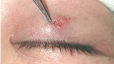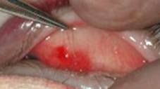 小切開法は、穿刺切開法で抜糸できない時に利用します。二重ラインの中央に3~4mmの長さの切開をし、穿刺切開法と同様の抜糸操作をします。