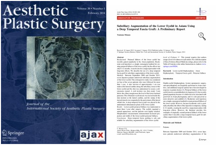 Subciliary augmentation of the lower eyelid in Asians using a deep temporal fascia graft. Aesthetic Plastic Surgery 2014;38:303-308.