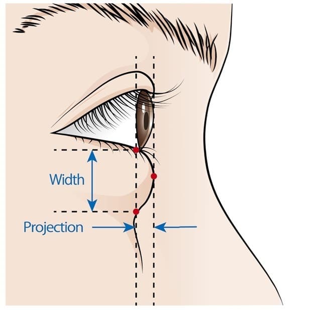 涙袋とは下瞼のまつ毛直下にできる帯状の膨らみのことです。眼輪筋が肥大していることででき上がっています。